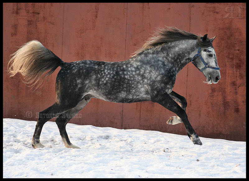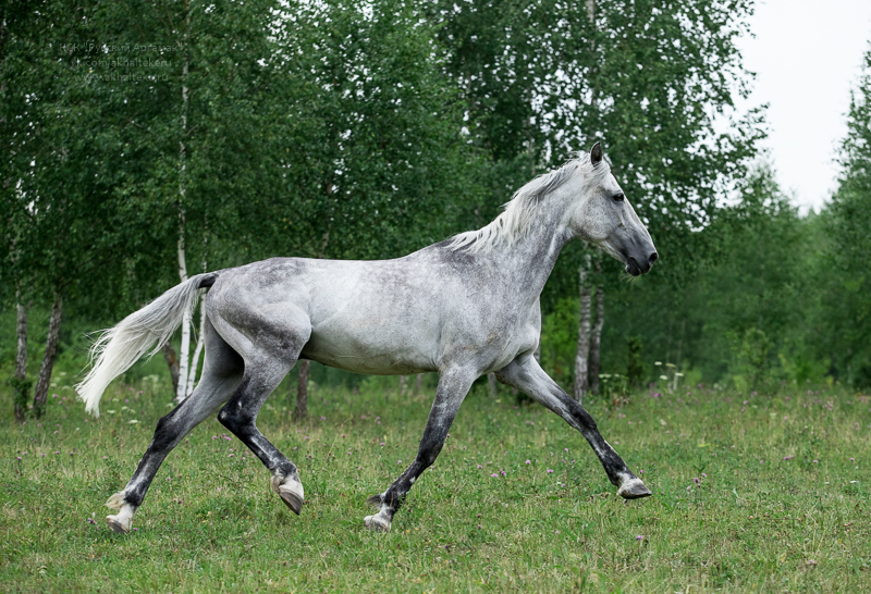 Орловский рысак – порода лошадей, очень популярная и старейшая в России. Такие лошади резвы, и это качество передается по наследству. По высоте они могут быть до 170 см в холке, а преобладает серая масть. Можно встретить в яблоках и буланых.