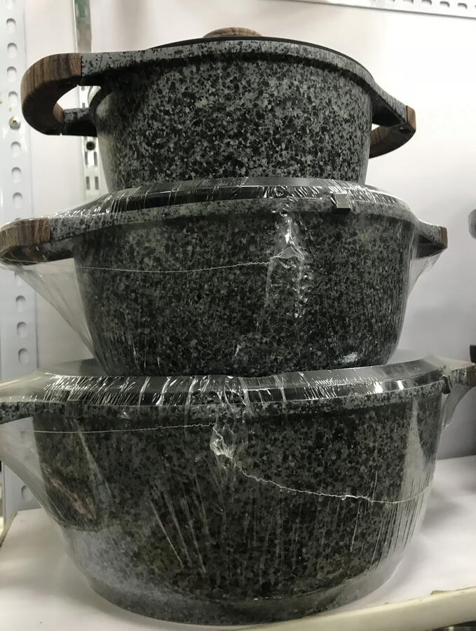 Название не стоит воспринимать буквально. Конечно же, это не цельный кусок камня, выточенный в виде сковородки. Основа такой посуды – металл. Внешний слой – гранитное, мраморное, алмазное покрытие, которое состоит из 4 и более слоев, что делает его прочным и долговечным.
