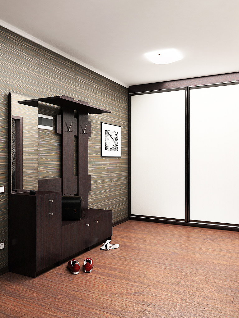 Как правило, маленькая прихожая имеет форму прямоугольника или квадрата. Именно поэтому при выборе мебели многие дизайнеры рекомендуют учитывать форму прихожей, отдавая предпочтение правильным по форме предметам мебели. Поэтому мебель лучше расставить таким образом, чтобы она позволила максимально приблизить форму прихожей к форме правильного квадрата.
