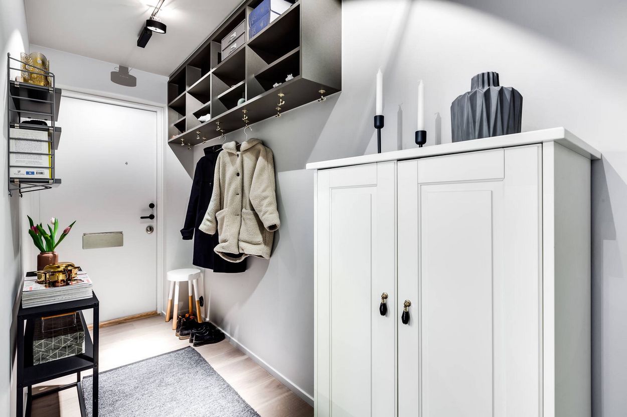 Также особенностью обустройства такой прихожей является то, что все системы хранения должны быть в ней преимущественно закрытыми. Открытые вешалки создают ощущение загроможденности и делают интерьер безвкусным. Всю одежду и обувь лучше располагать в закрытых компактных шкафчиках и ящиках.