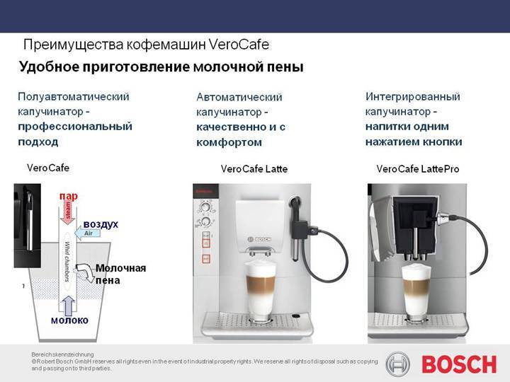 Отзывы пользователей кофемашиной от Бош утверждают, что после завершения автоматического приготовления напитка агрегат переходит в ручной режим управления, что позволяет добавить в чашку с напитком дополнительное количество воды тем самым регулируя крепость и насыщенность вкуса свежезаваренного кофе.