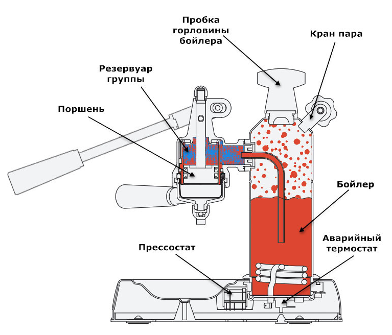 Общие схемы всех кофейных устройств идентичны и состоят примерно из такого набора составляющих: