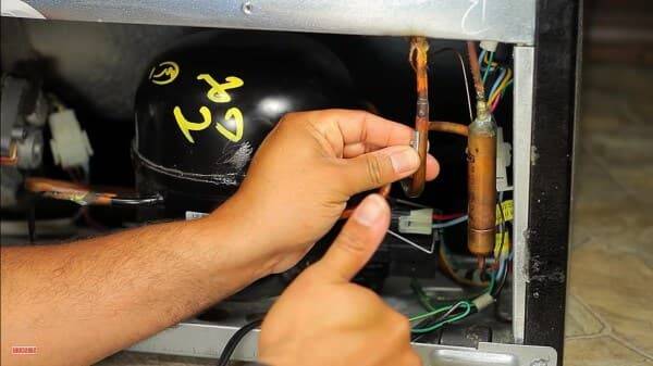 Важно помнить о том, что каждая модель холодильника имеет свою персональную массу фреона. После заполнения, с помощью течеискателя, проверьте, устранили ли вы утечку. После, продолжайте ремонт агрегата. Запаяйте сервисные трубки.