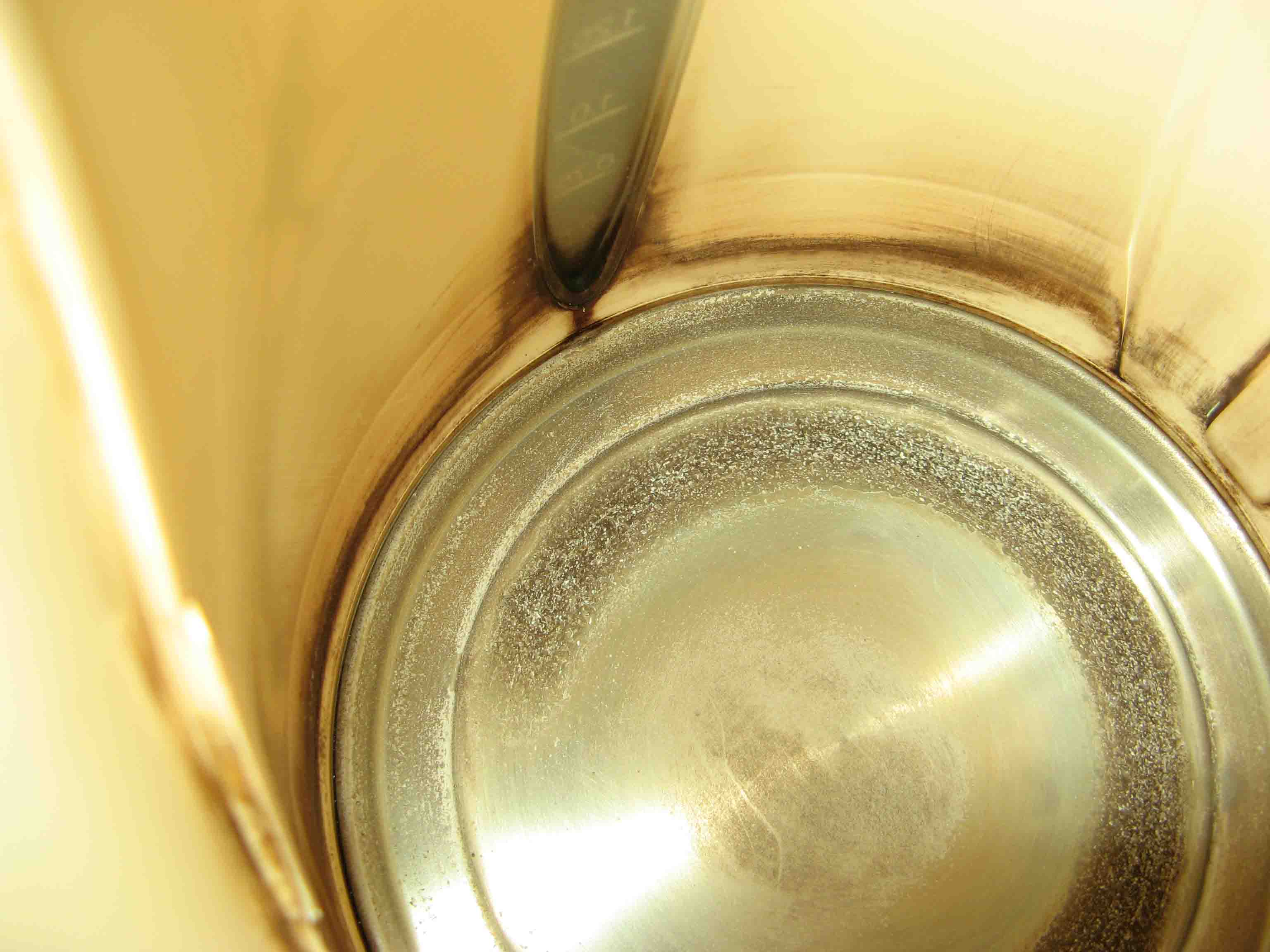 В первую очередь, необходимо обесточить устройство, вытащив вилку из розетки. После чего промыть корпус чайника тёплой водой с мыльным раствором. И только потом приступать к обработке проблемного участка.