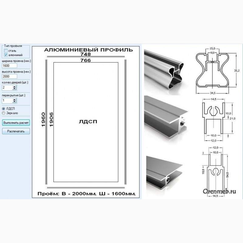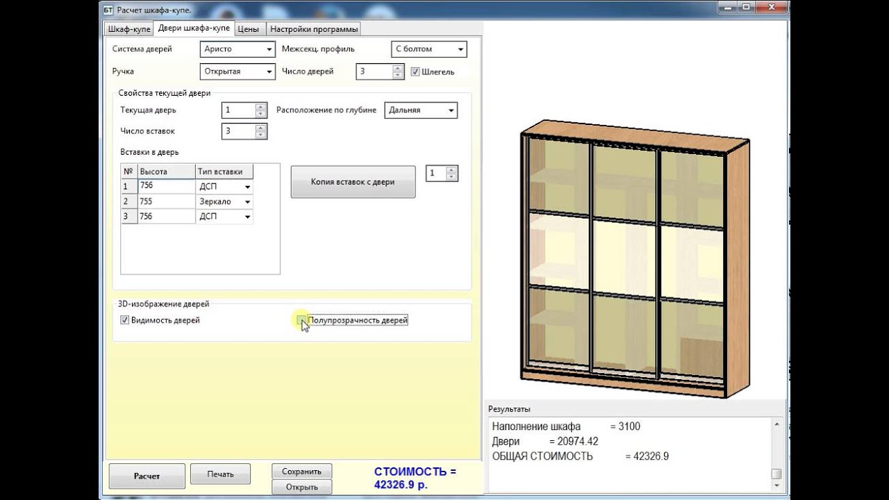 Шкаф купе калькулятор