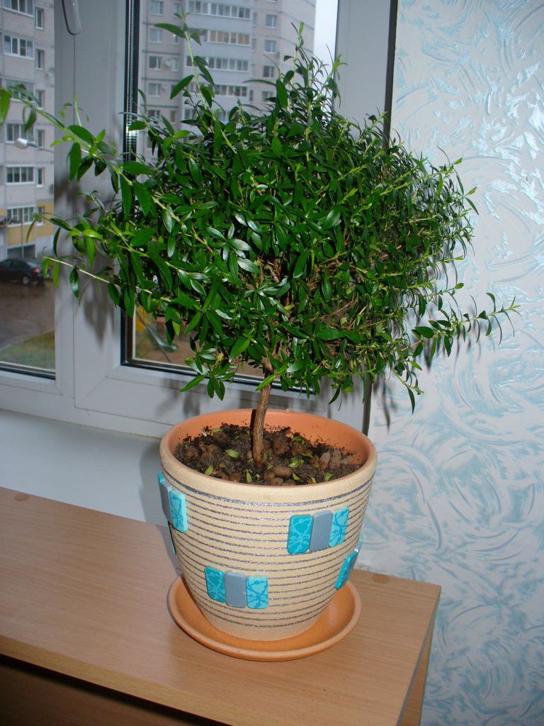 ОБРЕЗКА. С помощью обрезки мирту можно придавать необычные и оригинальные формы, например выращивать подобно бонсаю.