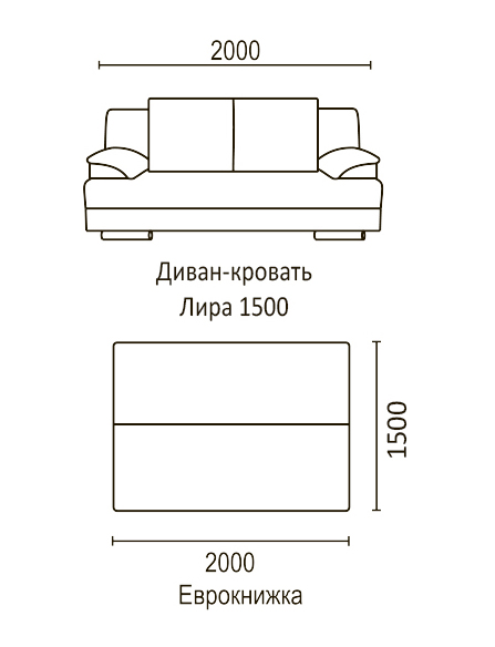 - Евро-диван. Отличным примером является «еврокнижка». Диван, который не поломается, так как в нем просто нечему ломаться: у него нет механизма трансформации. Долговечен, прост в использовании и практичен. Размеры общепринятые: 140 см на 200 см.