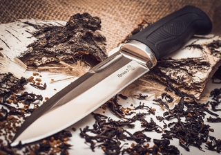 А вот сталь используется более современная, упругая и твердая. Все-таки сегодня многие охотники, которым приходится много времени проводить в лесу, а потом добивать и разделывать зверя, не ленятся носить в кармане или рюкзаке небольшой точильный камень.
