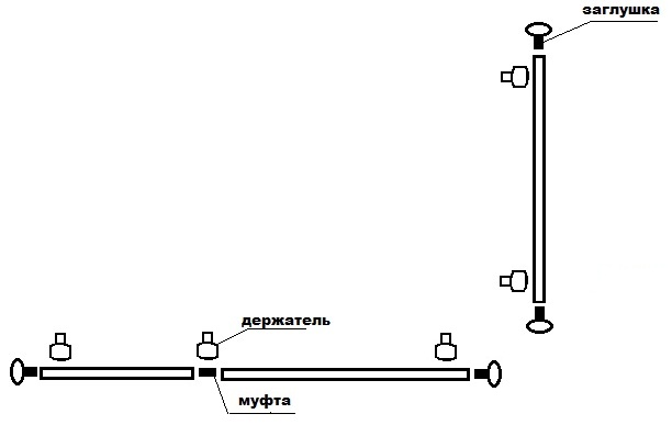 Заключительным этапом работы станет монтаж трубок. Трубка вставляется в готовые опоры, надо сделать так, чтобы трубка концами равномерно выходила за крайние опоры. Фиксируют трубку при помощи винта ключом-шестигранником. Если в конструкции предусмотрены несколько трубок, точно также фиксируются и остальные. Затем закрепляется трубка.