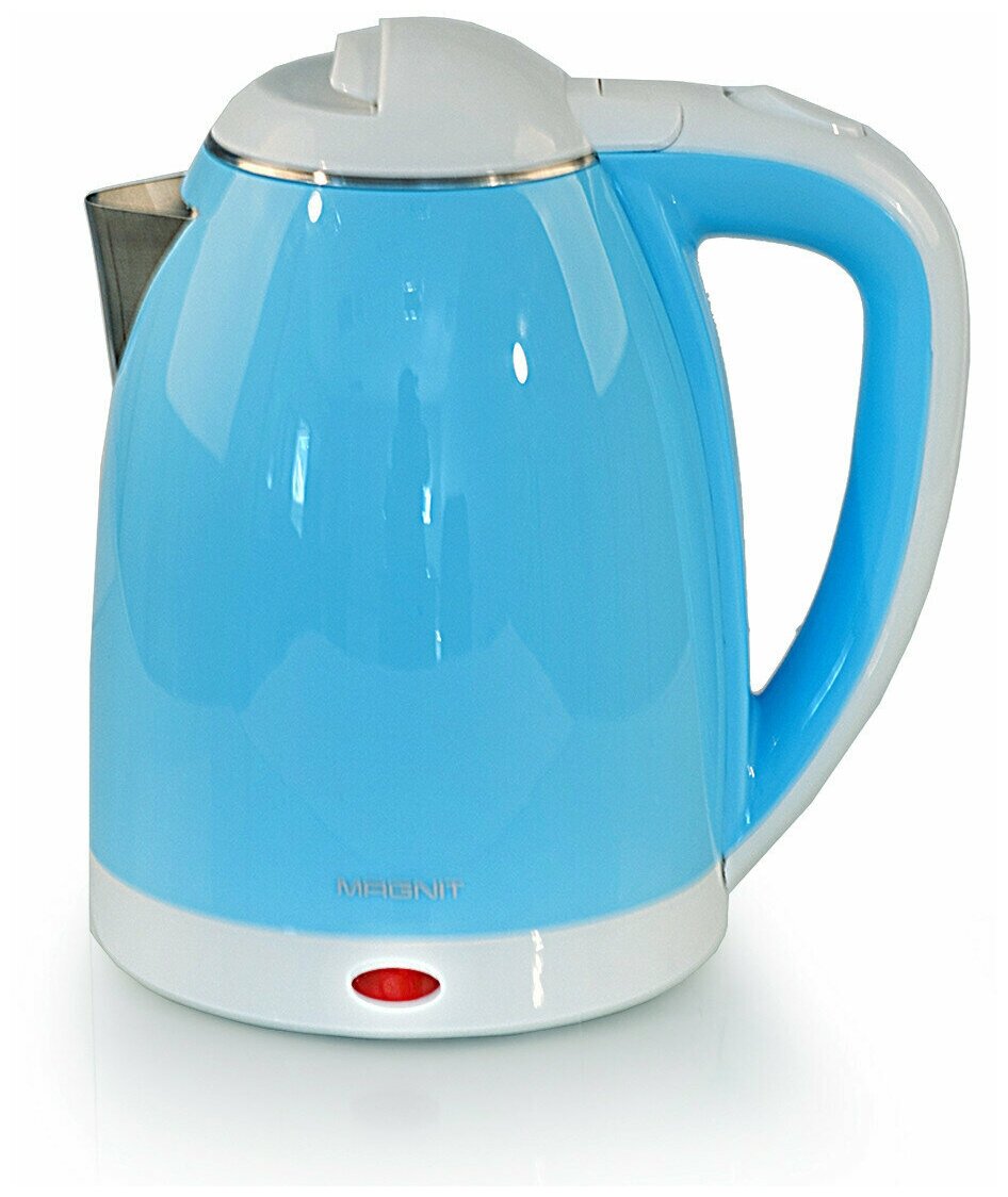 Хорошая модель электрочайника по доступной цене выделяется на фоне аналогов защитой от перегрева, оптимальным объемом и привычной мощностью 2,2 кВт. В платформе есть специальное углубление для шнура питания, вращается устройство на 360º вокруг своей оси. Особенно хвалят пользователи приятную голубую подсветку и солидный дизайн, под стать премиальным устройствам. Чайник быстро нагревает воду, легко моется, нареканий на качество не обнаружено. Чайник хорош по всем пунктам, единственный минус – чуть тяжеловат, по отзывам.