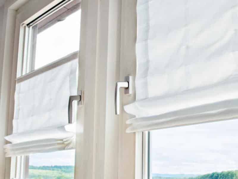 Вешать же римскую штору на раму окна можно только в случае если окно глухое. В противном случае, скорее всего, створка помешает карнизу встать в один уровень. При этом ручки на створках могут мешать полотну опускаться и подниматься.