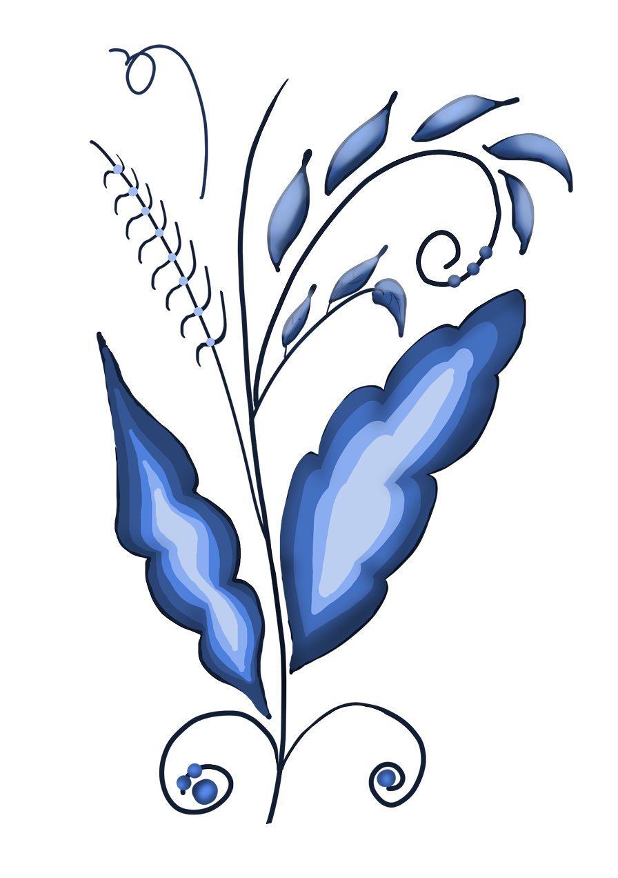 Для гжели характерен градиент — от насыщенного оттенка синего цвета к чисто белому.