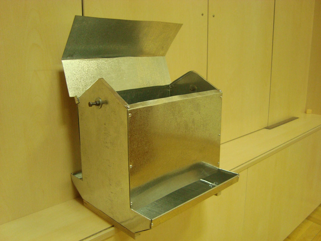 Чаще всего кормушки делаются из металла (оцинкованного или обычного жестяного).