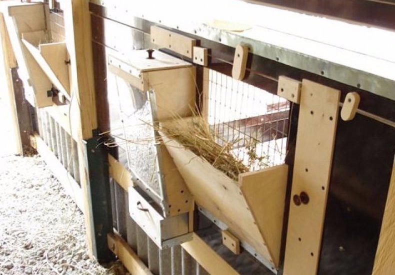 Ясельная кормушка обычно используется под сено или траву. Такое устройство считается весьма практичным, но требующим постоянного регулирования. Желобковые кормушки подойдут в том случае, когда животных кормят корнеплодами и концентрированными кормами. Преимуществом данного типа считается возможность одновременно покормить большое количество зверей. Бункерную кормушку часто называют лучшей вариацией. Используется она для зерна и иных сыпучих кормов, в том числе и в виде гранул.