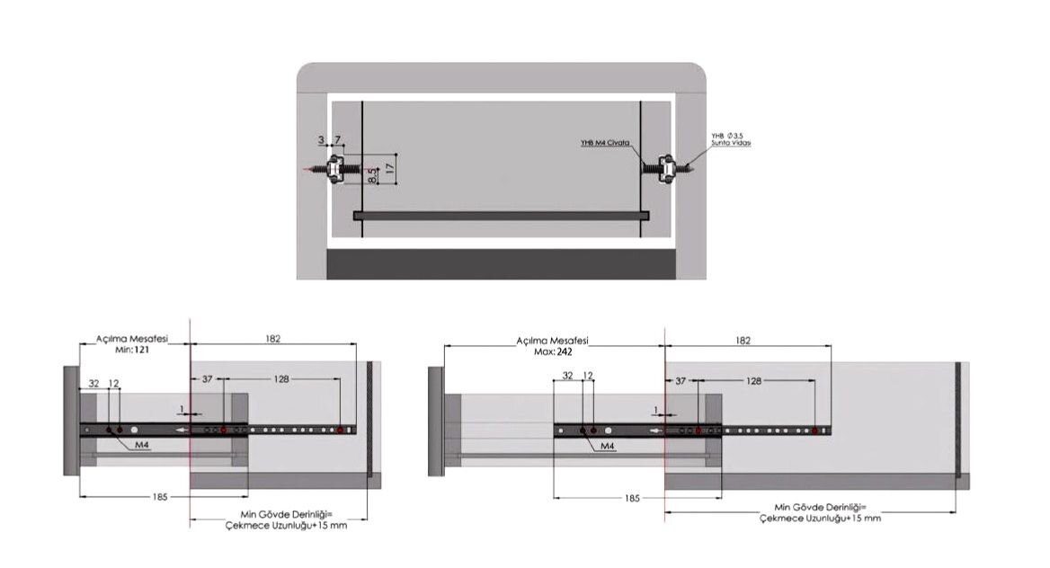 4. Схема монтажа шариковых направляющих высотой 17 мм