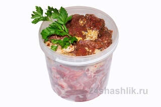 - Наиболее пригоден для замораживания шашлык в маринаде слабой кислотности: годятся сок лимона, масло, уксус, минералка, горчица, томатная паста и т. д.