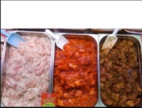 Это может быть как традиционный шашлык — кусочки куриного мяса, предназначенные для нанизывания на шампура, расфасованный в пластиковые ведра, так и крылышки в остром маринаде, представлены в ассортименте и цыплята табака.
