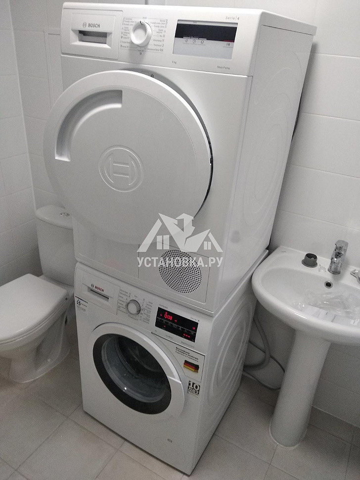 Стиральная машина имеет на больший вес на по сравнению с сушильной машиной, для этого в растворе колонны ее необходимо разместить ниже.
