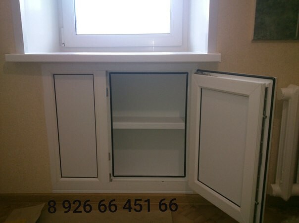 зимняя модель с пластиковыми дверцами под подоконником в «хрущевке», его отделка, отзывы