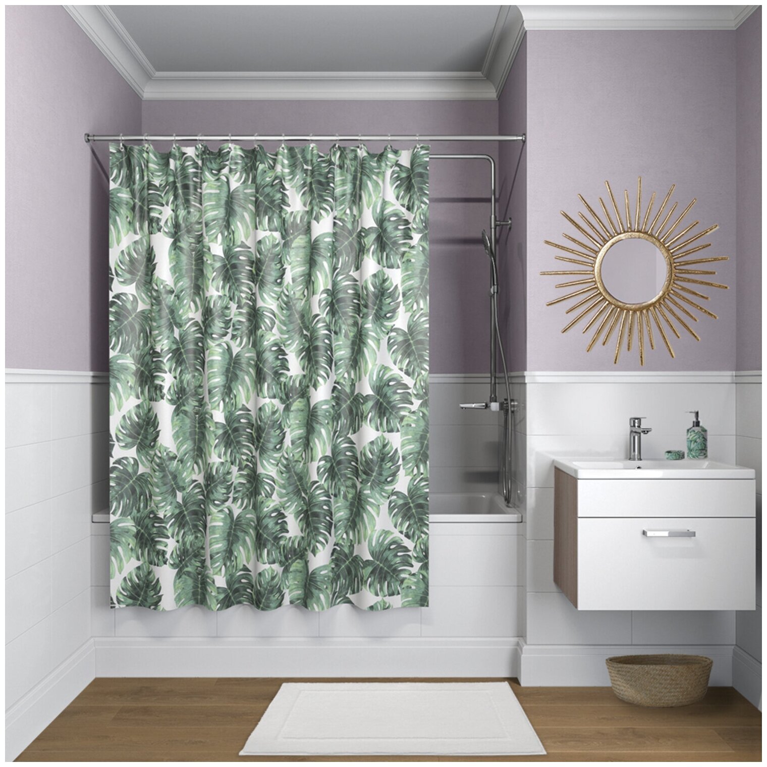 Шторка в ванной может не только защищать от брызг, ещё она способна служить стильным элементом декора комнаты