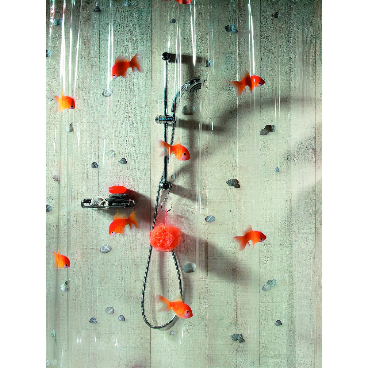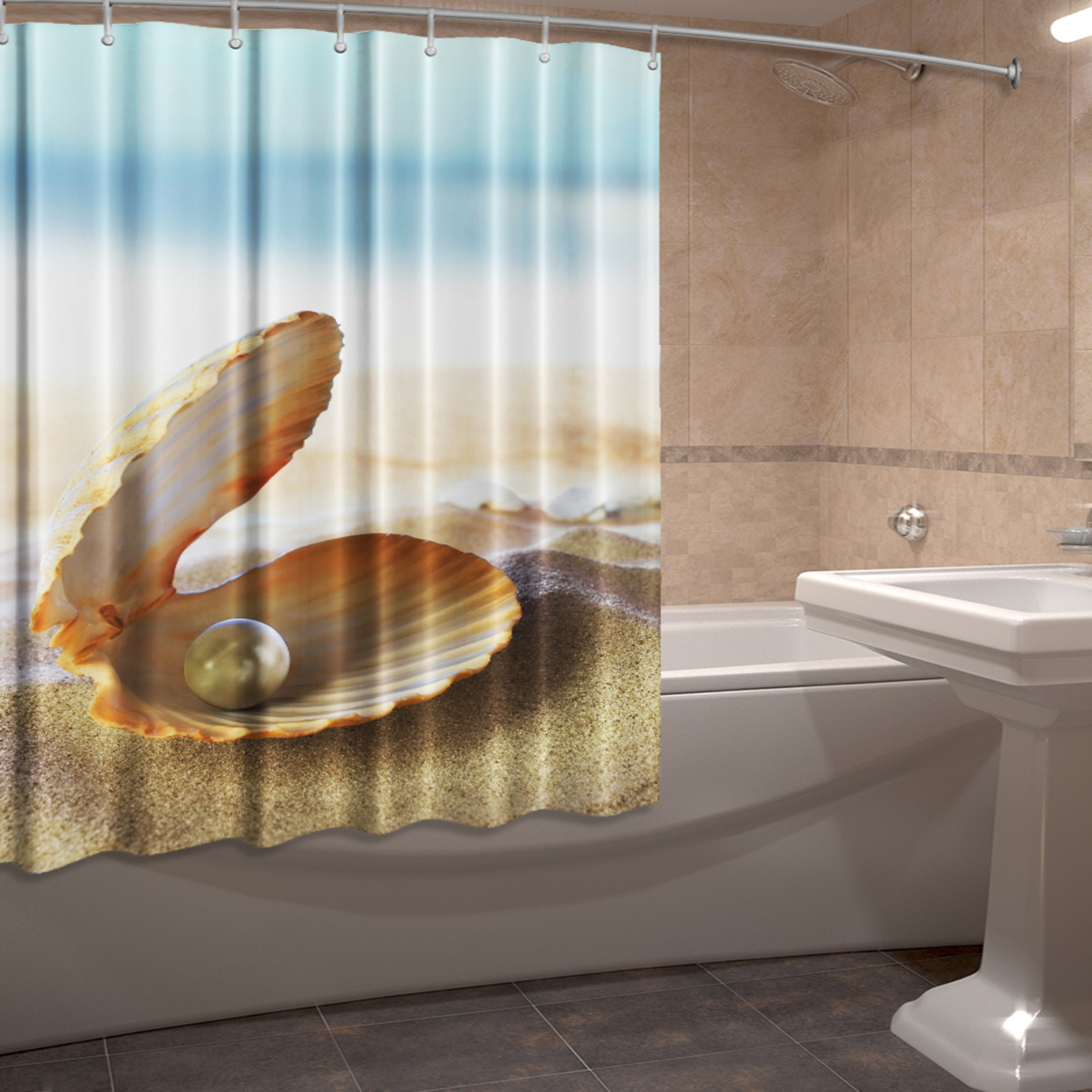 - И, конечно же, декоративная функция. С помощью этого элемента, который занимает довольно обширное пространство, можно очень быстро преобразить интерьер ванной комнаты и придать ей желаемого настроения. А при необходимости вы можете так же быстро кардинально изменить обстановку, просто заменив шторку новой.