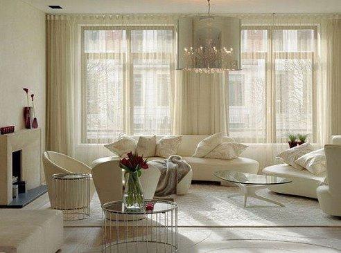 Оконные наряды из белоснежных, голубых, желтых и других светлых тканей символизируют спокойствие, чистоту и гармонию. Декор окон драпировками нейтральных нежных тонов полноценно компенсирует нехватку света в темных помещениях и рассеивает чрезмерно яркое освещение с южной стороны. Светлые шторы в интерьере придают пространственной композиции праздничный вид. Комната любого назначения преобразится до неузнаваемости с появлением пышных портьер с ламбрекенами или лаконичных прямолинейных занавесей со светлым окрасом.