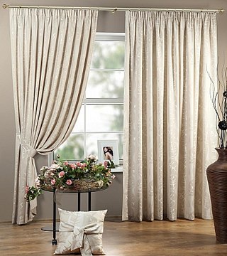 Жаккард – однотонный портьерный материал для любителей элегантной обстановки. Его особое свойство – изысканные узоры в контрасте глянцевой и матовой фактур. Нередко жаккардовые шторы двухсторонние – на одной стороне матовый рисунок на глянцевом фоне, на другой стороне – наоборот.
