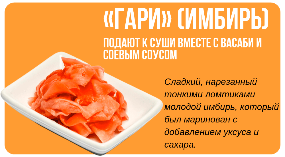 Маринованный имбирь — обязательный гарнир к любому суши. Хорошей новостью является то, что имбирь для суши долго хранится, поэтому вам не нужно сильно беспокоиться о том, что он испортится, если вы не едите суши каждый день. Есть много разновидностей маринованного имбиря, и каждый из них имеет немного другой вкус. Попробуйте несколько, чтобы найти тот, который подходит вашим вкусовым рецепторам.
