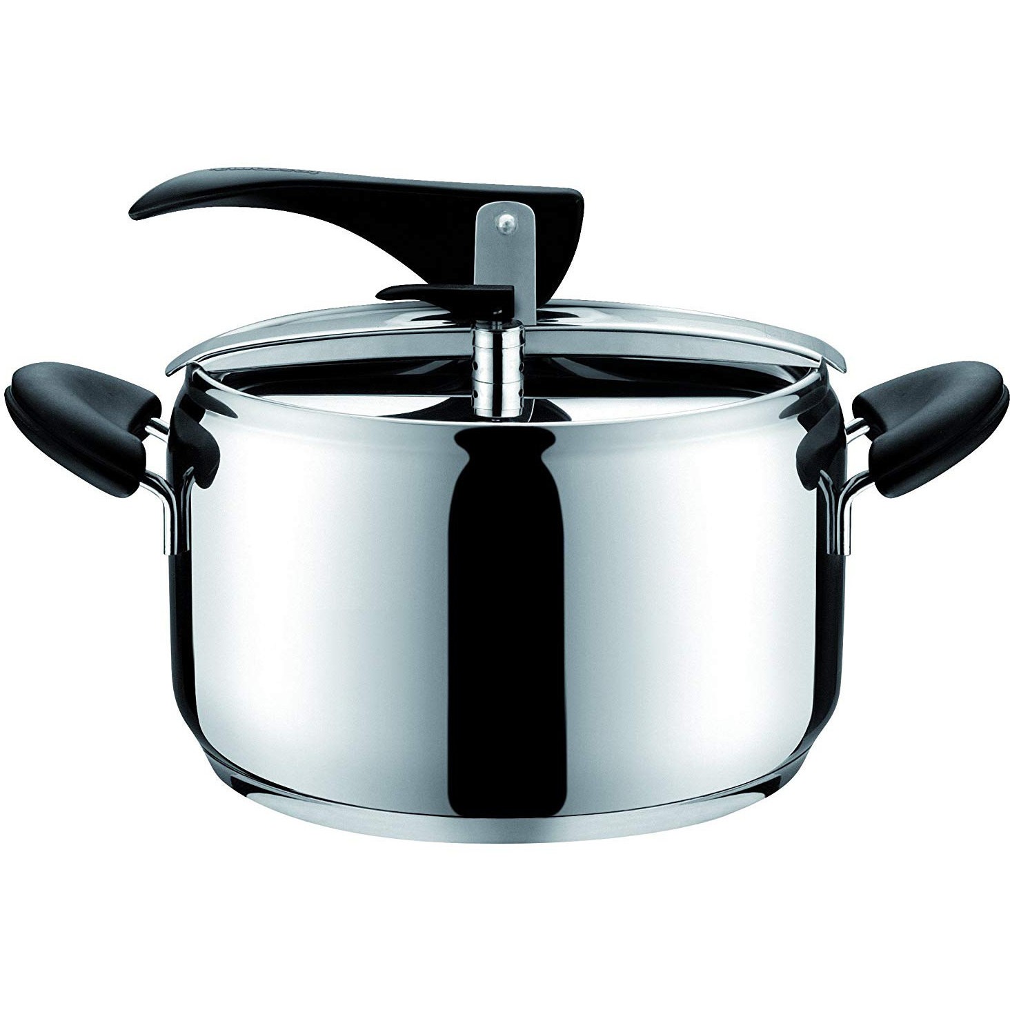 Presto легко запечатать, просто надавив на крышку, пока воздух не выйдет наружу, и закрыв ее.Presto быстро нагревается, между 4 и 8 минутами, но необходимо постоянно регулировать температуру, чтобы поддерживать давление. Во время приготовления пищи пар выпускается через регулятор давления, который качается наверху клапана и указывает на высокое или низкое давление. Чтобы понять, нужно ли повышать или понижать температуру, требуется определенная практика.