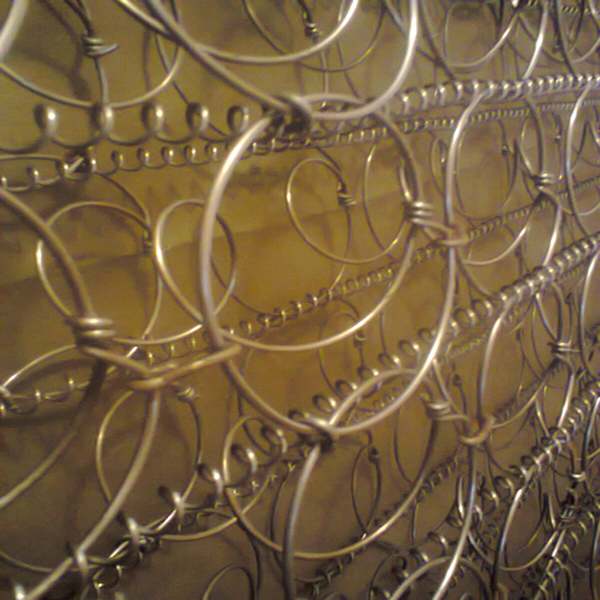- Обвязка. Этот процесс требует ответственного подхода. По краям каркаса необходимо набить гвозди. Для перевязки верхней части пружин используется тонкая веревка. Сначала обрабатываются ряды поперек, а потом вдоль. Не стоит натягивать бечевку чрезмерно сильно, чтобы пружины сохраняли вертикальное положение и не соприкасались друг с другом. Дополнительно обвязка осуществляется по диагонали, после чего гвозди загибаются.