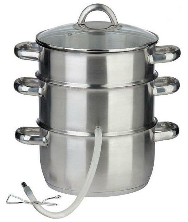 Важная деталь – шланг, который крепится к трубке на среднем уровне. Именно через него переливается готовый напиток. - Свежевыжатый фруктово-ягодный или овощной сок – настоящая кладезь витаминов и других полезных веществ. Чтобы приготовить к обеду стакан-другой вкусного напитка, достаточно иметь под рукой современную соковыжималку. Совсем другое дело – переработка большого урожая плодов с дачного участка. Здесь поможет соковарка, с которой полученный сок достаточно перелить в стерильную посуду – и заготовка на зиму готова.