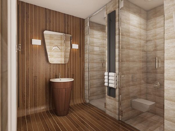 Это вполне закономерный вопрос, поскольку дерево выглядит довольно эффектно, даже если это спрессованная из стружки панель, но в то же время все мы помним о том, как хорошо волокна древесины впитывают влагу.