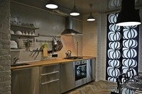 Стеклянные панели. Редкий и необычный способ отделки стен в кухонном помещении. Такие панели могут использоваться для обработки как рабочей зоны, так и обеденной.