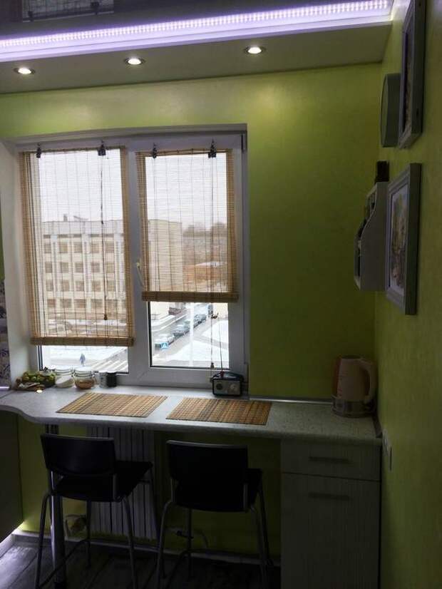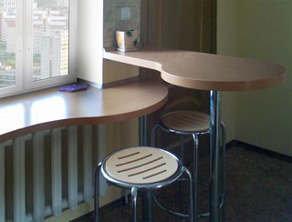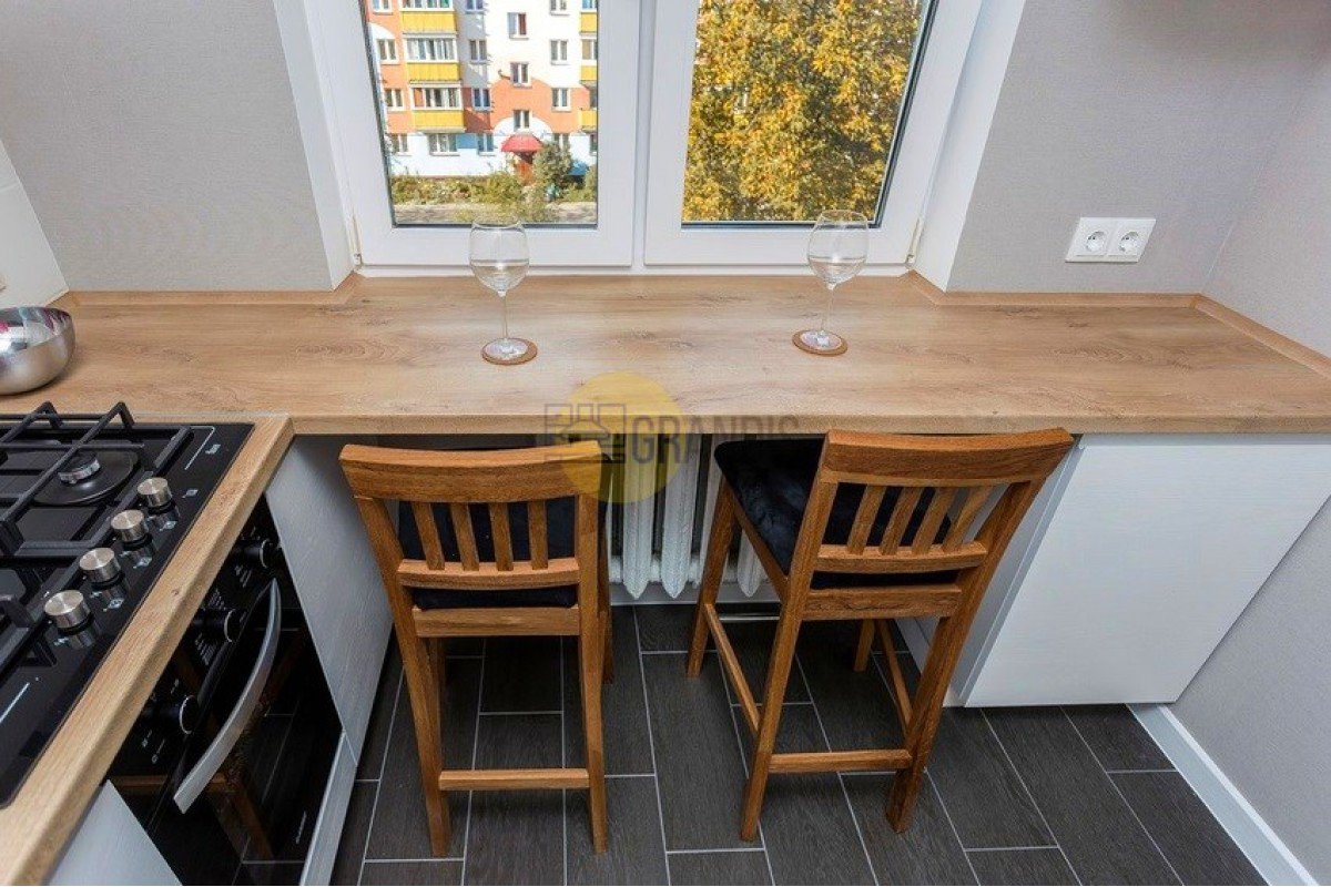 - этот вид перепланировки считается менее затратным и менее трудоемким, требуется всего лишь заменить место над окном на столешницу, прикрутив снизу устойчивые опоры;