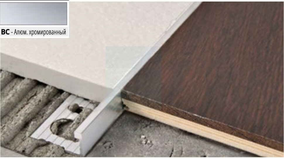 - Заделывание стыка с сохранением перепада и использованием дополнительных элементов – алюминиевых профилей или порожков.