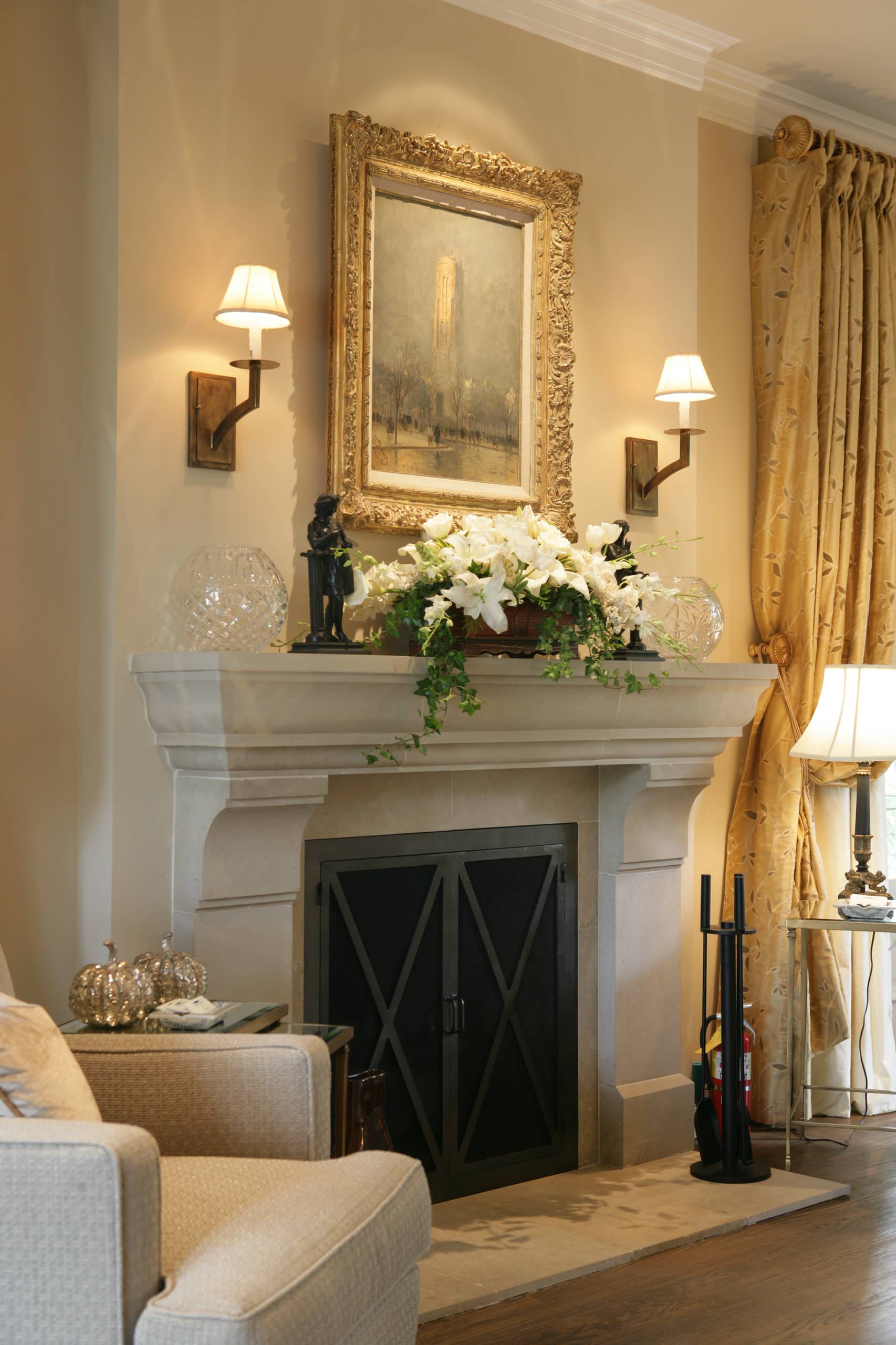 - В крупных барочных каминах полка расположена высоко, а подвешенный высоко ТВ-прибор неудобно смотреть.