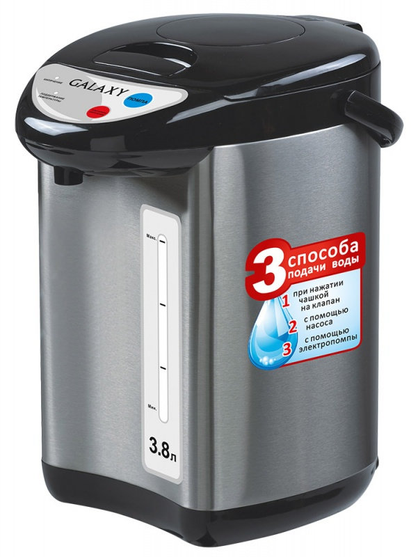 - ● можно купить термопот с механической помпой на случай отключения питания (например, при переносе устройства на общий стол во время застолья).
