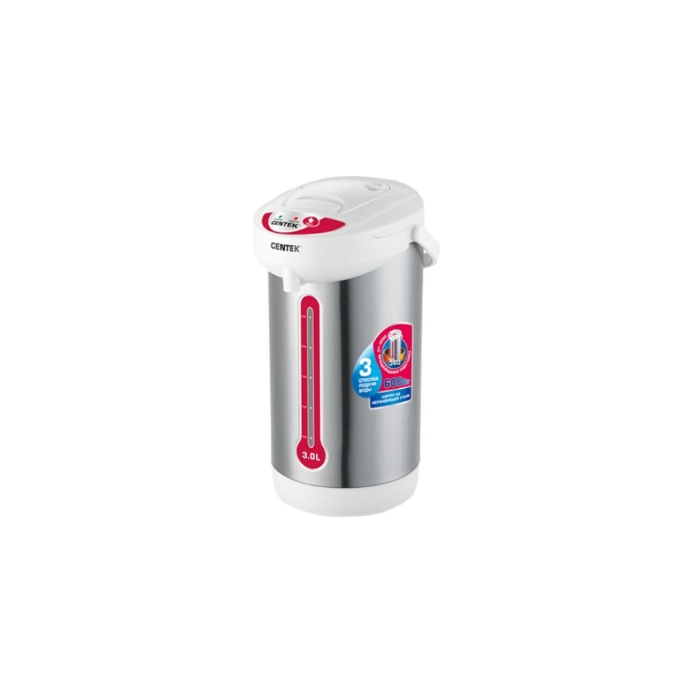 Прибор всегда выпускается с закрытым нагревательным элементом, что защищает его от оседания извести, накипи, других вредных веществ. Вода наливается либо при помощи ручной помпы, либо при помощи электронасоса, для чего следует нажать на специальную кнопку или воздействовать чашкой на клапан. Это позволяет исключить необходимость поднятия или наклонения прибора. Термопот, как правило, имеет довольно большой объем. Стандартный вариант – 3 литра, однако он может быть и больше (4-5 литров) либо чуть меньше (2 литра).