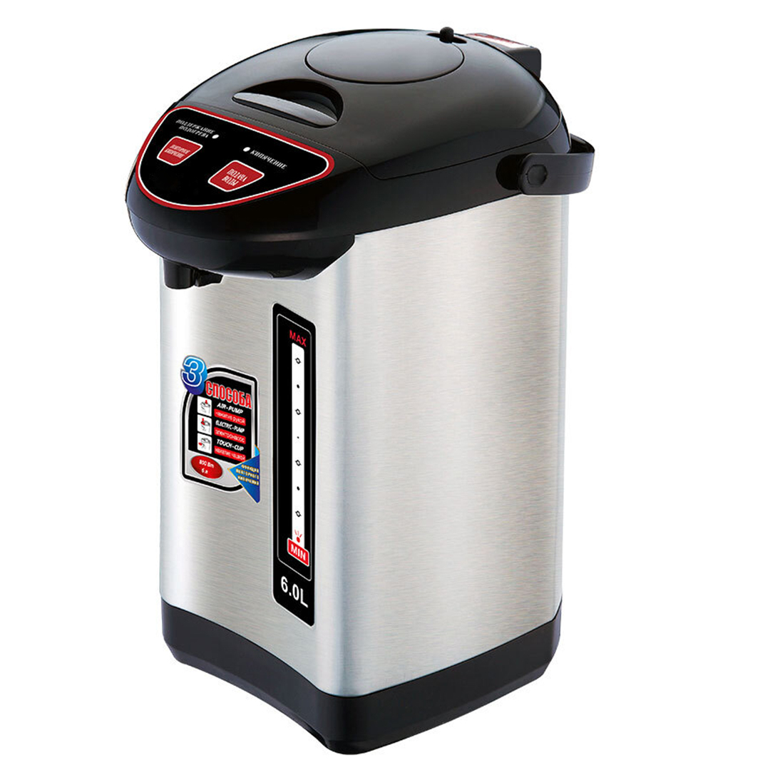 Термопот представляет собой удачное сочетание чайника и термоса: он подогревает и кипятит воду и в то же время поддерживает ее температуру на уровне 85-90ºС. В то же время он является экономичным прибором, так как обычный чайник потребляет примерно 1850-2200 Вт, а термопот – 700-800 Вт. Кроме того, литраж термопота может варьироваться от 3 до 6 л, в то время как чайник обычно вмещает в себя 1-2 л воды.