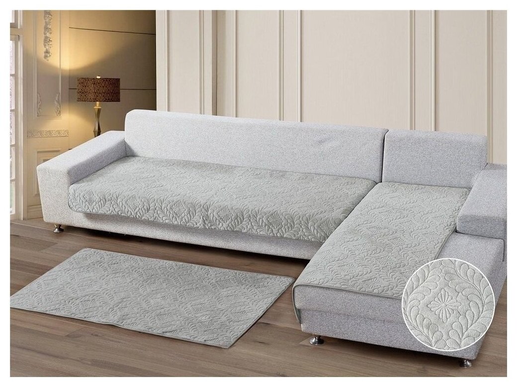 Особенную актуальность имеет этот момент, когда обивка — светлая. Покрывало надежно защитит ткань дивана от попадания грязи, пыли, мусора, жирных пятен и проч.