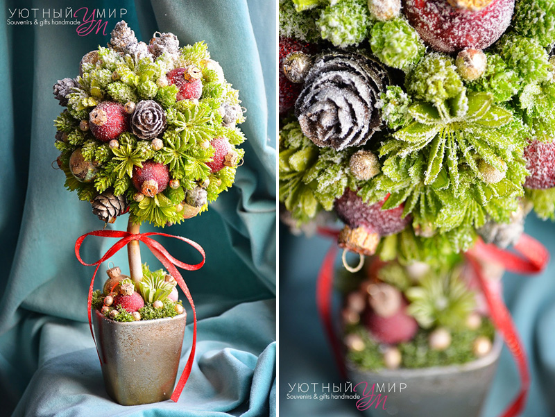 Топиарий из шишек и листьев пошаговое фото: пошаговые мастер-классы изготовления из сосновых и еловых шишек, орехов и цветов, желудей и листьев своими руками