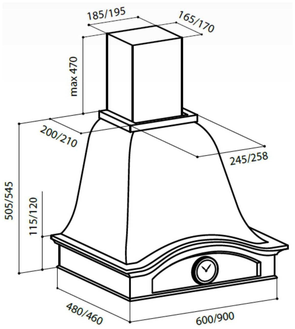 - Навесной шкаф, в который встраивается вытяжка, заказывается строго по ее размерам. Эти характеристики должны прилагаться в инструкции к вытяжке.