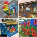 Создайте красочные фрески на стене или заборе, красивую мозаику в художественном стиле, украсив детскую площадку. Ваши дети будут счастливы принять участие в создании уникальных орнаментов, собирая крышки от бутылок для творчества, а также научатся ценить простые вещи.