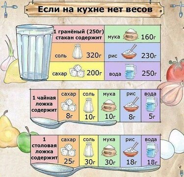Решение вопроса, сколько грамм в стакане каждого продукта, позволяет отмерить его количество при отсутствии весов.