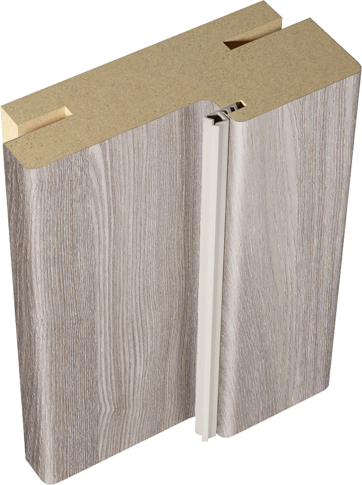 - Телескопическая коробка для двери оснащена специальными пазами, в которые крепятся доборы и наличники.