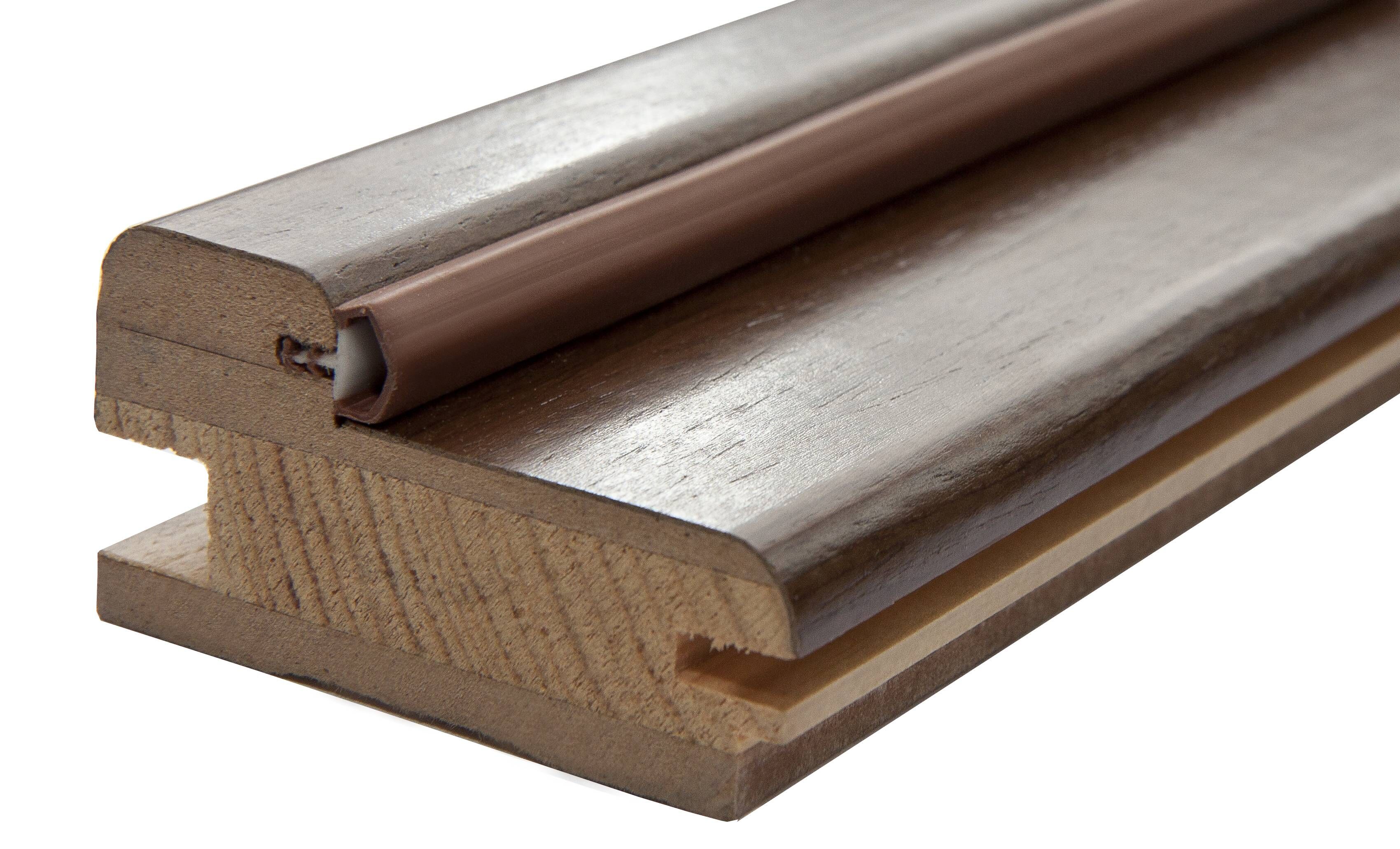 - Брусья из МДФ и ХДФ. Древесно-стружечный материал, пропитанный склеивающими веществами средней и высокой плотности, обклеенный натуральным шпоном. Толщина брусьев составляет от 30 до 60 мм в зависимости от массы дверного полотна.