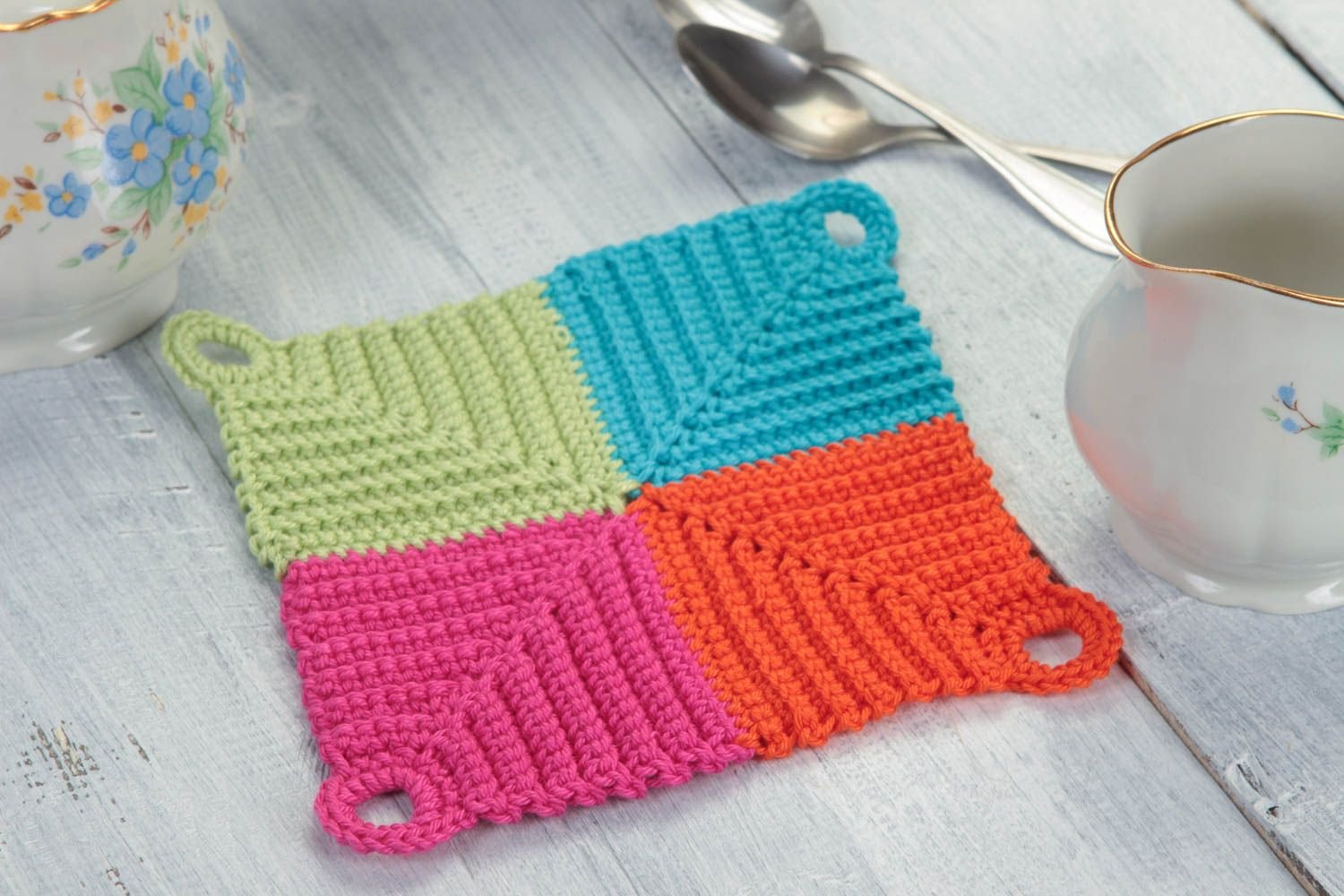Когда я смотрел на вязание крючком для кухни, мне всегда нравились подставки под горячее. Эта квадратная хлопковая ткань будет так стильно смотреться на столе!