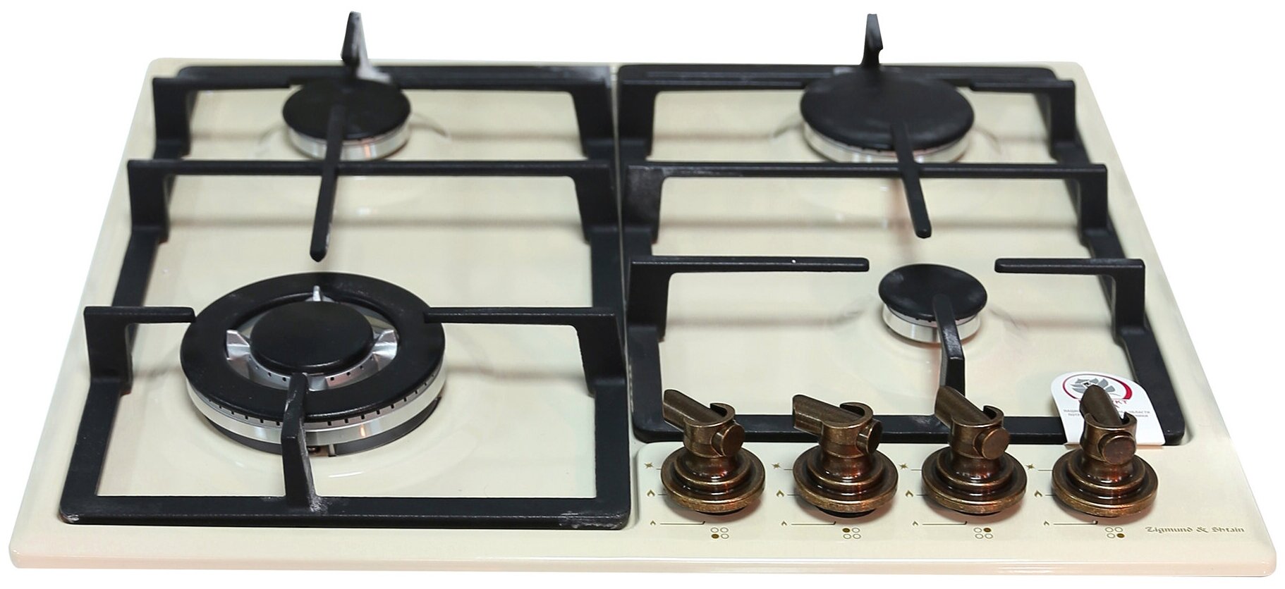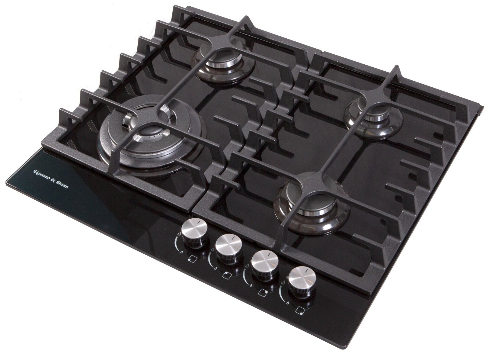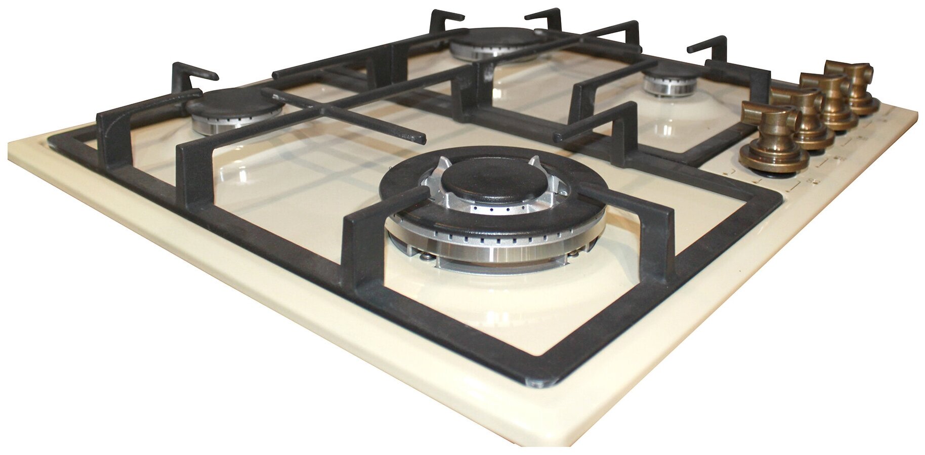 Они расположены достаточно далеко друг от друга, что позволяет разместить на каждой конфорке крупную посуду. Эргономичные ручки легко поворачиваются и контролируют уровень пламени. Отличительной особенностью этой варочной панели является наличие противоскользящих и термостойких ножек.