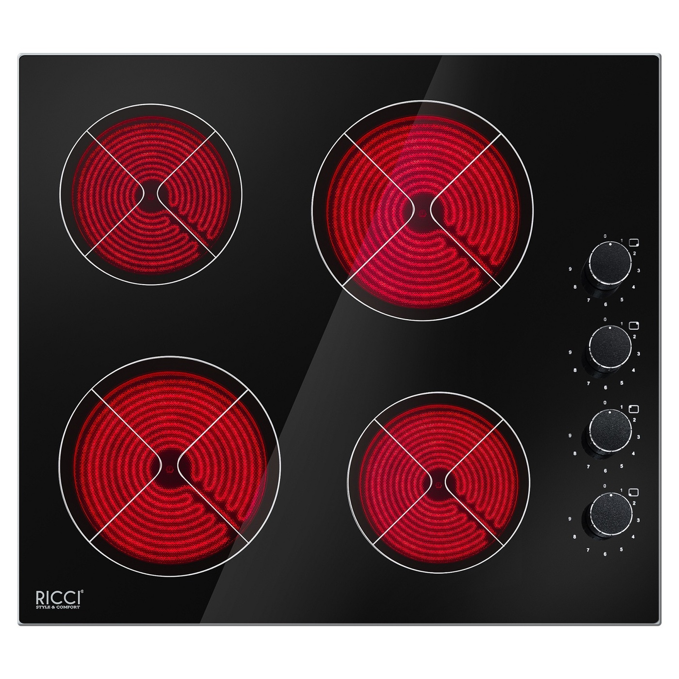 4 конфорки – классический вариант для подавляющего большинства кухонь.