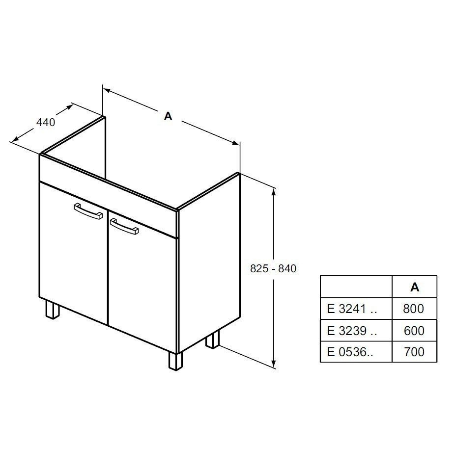 Размер не является эталонным, есть масса моделей корпусов более 700 мм, вплоть до 820 мм. - 850 мм. Обычно имеется в виду высота нижних кухонных шкафов, у которых ножки не предусмотрены, а установка выполняется непосредственно на корпус или на цокольный каркас. Как и в первом случае, размер не является универсальным: величина моделей может отличаться в большую или меньшую сторону (820–900 мм и больше).